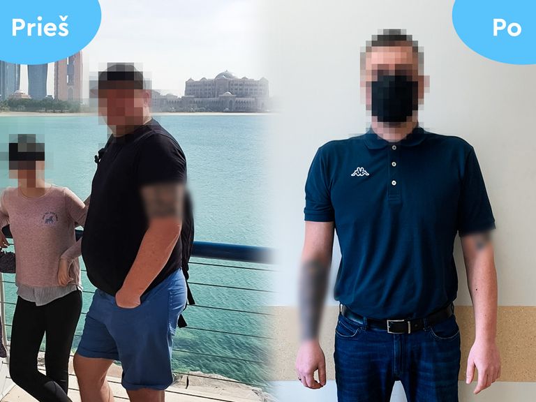 Kad pasiektų akivaizdų rezultatą, pacientui užteko 7 mėn., per kuriuos su dietologe jis konsultavosi kas 1–2 mėn., nuosekliai laikydamasis rekomendacijų. Nuotraukose matyti, kaip pacientas atrodė prieš konsultacijas ir po.
